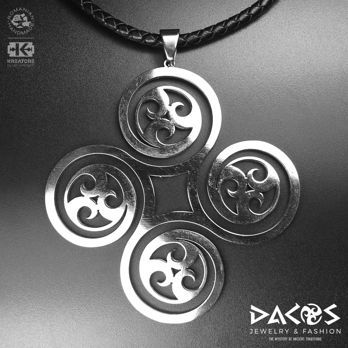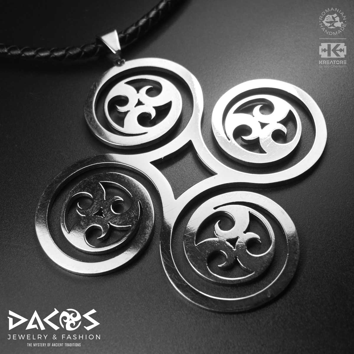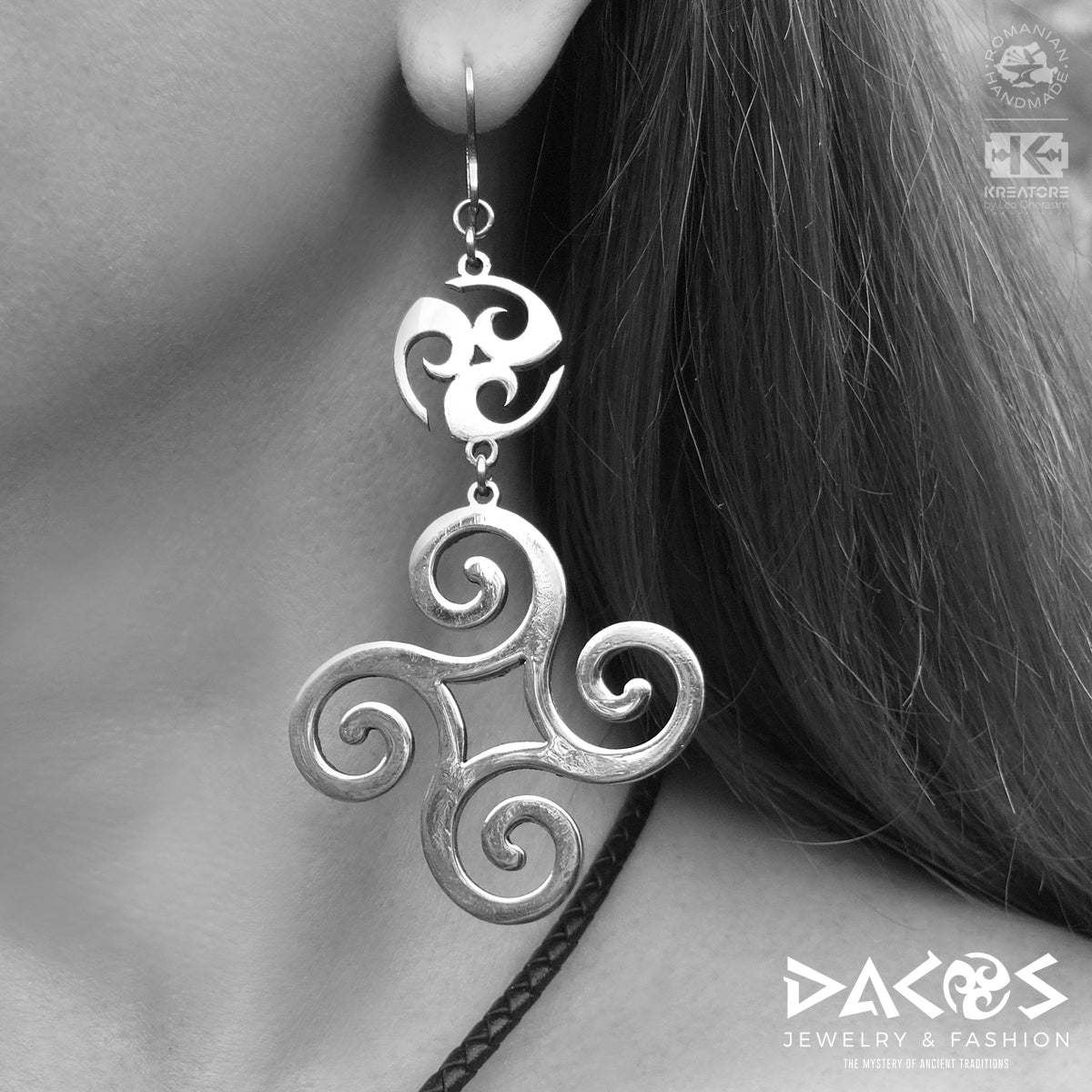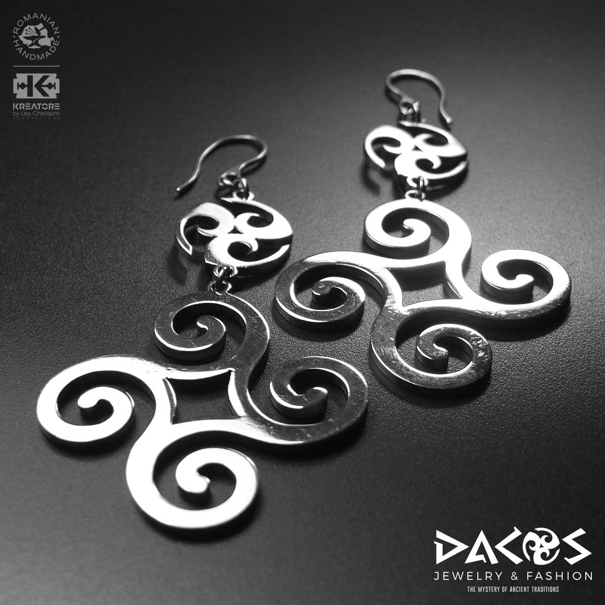 Setul de bijuterii dacice TETRASKEL SPIRALIS este un produs decupat/traforat în tablă de inox (oțel inoxidabil) cu o mașină laser CNC, ulterior prelucrat și finisat manual (handmade), cu un design contemporan unic, inspirat din culturile neolitice, celtice și geto-dacice, realizat numai pe comandă, în serie limitată și exclusivistă. Este o bijuterie „statement”, „care te îmbracă”, punându-te rapid în valoare, fiind remarcată. Pandantivul poate fi asortat oricărei ținute tradiționale sau teatrale, moderne sau clasice, casual sau glam. Dedicat persoanelor curajoase și extrovertite.