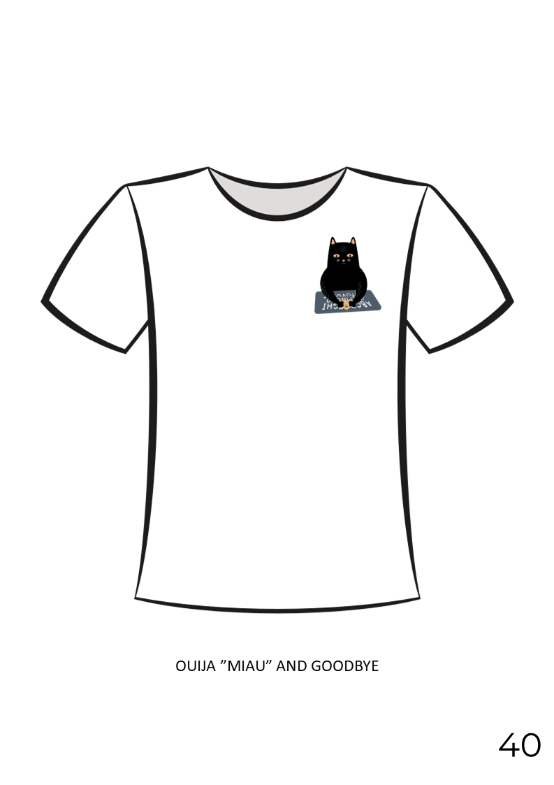 - "Ouija 'Miau' and Goodbye" – Un model jucăuș, dar mistic, pentru iubitorii de simboluri oculte.