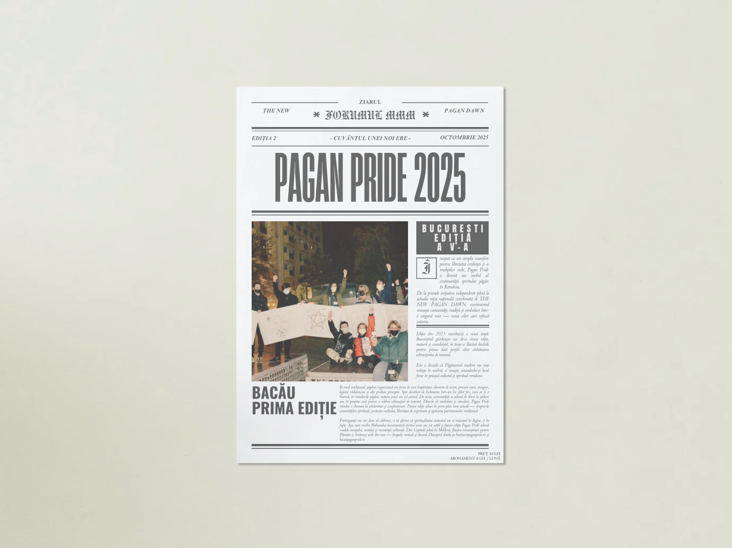 Publicat de Redacția ROPAGANISM, în parteneriat cu Asociația THE NEW PAGAN DAWN (NOII ZORI PĂGÂNI), ziarul apare lunar și aduce o perspectivă unică asupra actualității, combinând analiza culturală cu reflecția spirituală.